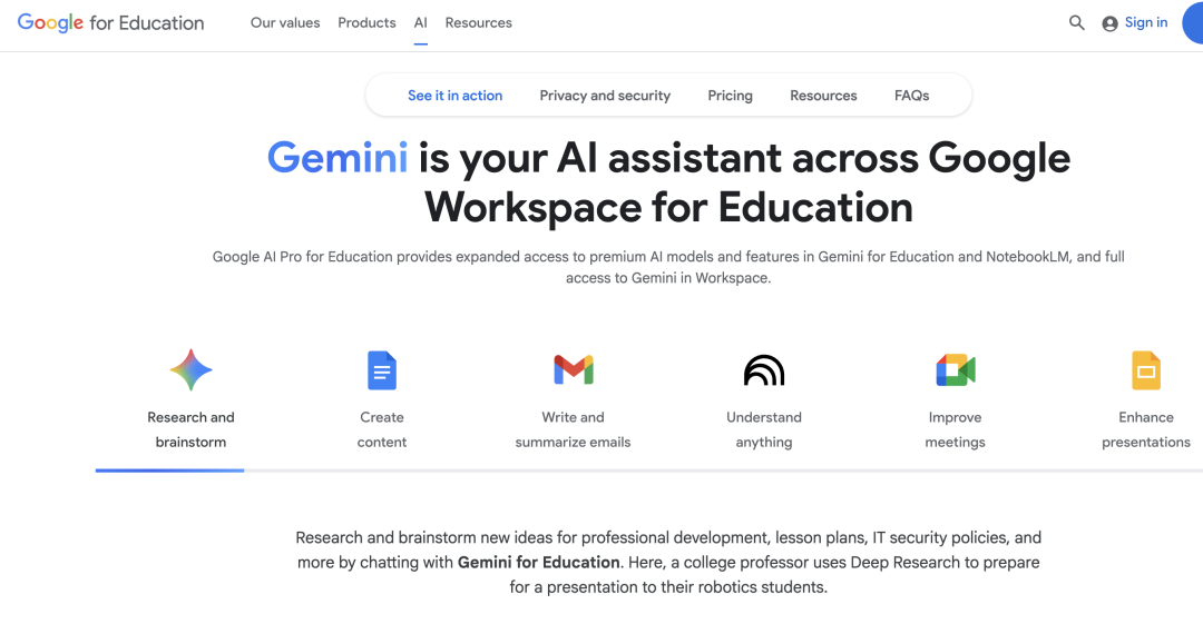 第一,正在学生数据现私、算法公允性、手艺伦理规范、风险防控系统等方面加强合做研究取经验共享,为AI时代沉构讲授关系、提拔育人效率供给了全新径。先后出台了以白宫行政令、国度AI教育步履打算为代表的一系列顶层文件,所谓强云端、轻终端的普惠模式,这一丰硕教育资本的宝库,为全球AI管理贡献教育聪慧。美国教师AI培训更多由企业、高校取平台配合供给图片来历于谷歌、微软官网截图